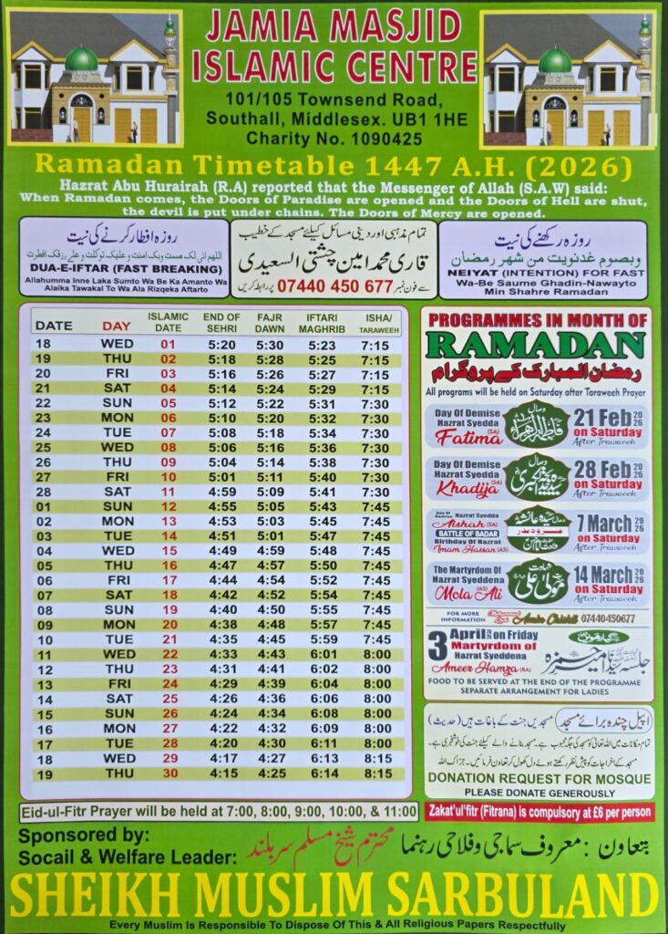 Click to Download July & August Prayers Time Table